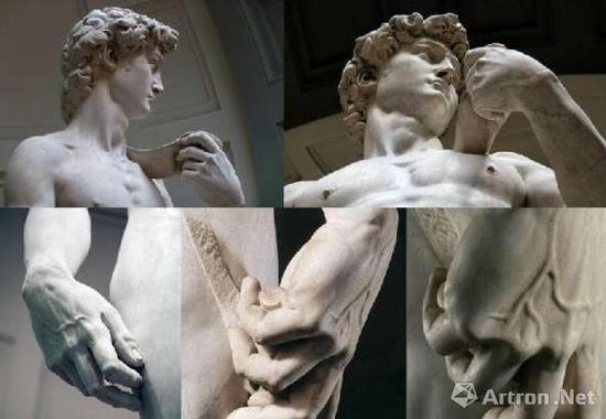 米开朗基罗,《大卫》(各角度局部),517cm,大理石,1501-1504。图/取自WIKIMEDIA
