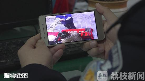 徐州市云龙公安分局彭城派出所民警刘丹介绍说:“这个就是嫌疑人,他第一次拿起受害人摊主的玉手镯。看了一下,将玉手镯又放回摊位上。嫌疑人观察一阵后,便开始着手盗窃。他又第二次拿起玉手镯同时,顺便将两个小玉件(拿起)。玩了个障眼法,从左手移到右手手套里面,然后把这个玉手镯放回到摊位上,示意摊主这个玉手镯不要了,这时摊主没有察觉两个小玉件已经被嫌疑人拿入手中,然后大模大样的很坦然的离开现场。“
