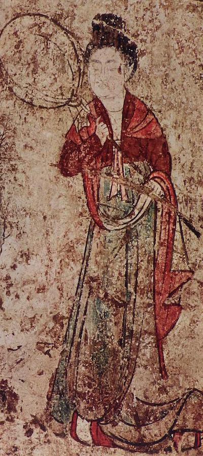 不过,这里所介绍的画作例子都是裙上系短款围腰布、此围腰布与同心结之间好像具有某种关联似的,但是如图6的宫女,裙上系围腰布而无佩带同心结的情况也是有的。