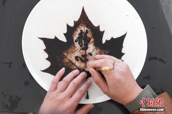 山西襄垣民间艺人树叶上雕出斑斓世界