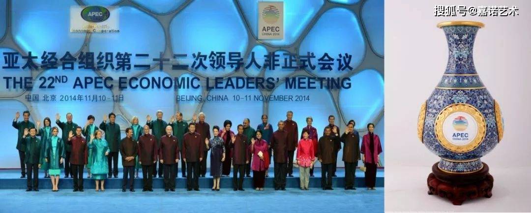 2014年,在北京APEC期间,《四海升平》景泰蓝赏瓶送给各经济体领导人