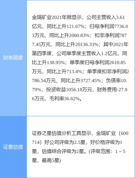 证券之星估值分析提示金瑞矿业盈利能力较差,未来营收成长性一般。综合基本面各维度看,股价偏高。从短期技术面看,近日消息面一般,主力资金有大幅介入迹象,短期呈现震荡趋势。公司质地良好,市场关注意愿无明显变化。更多