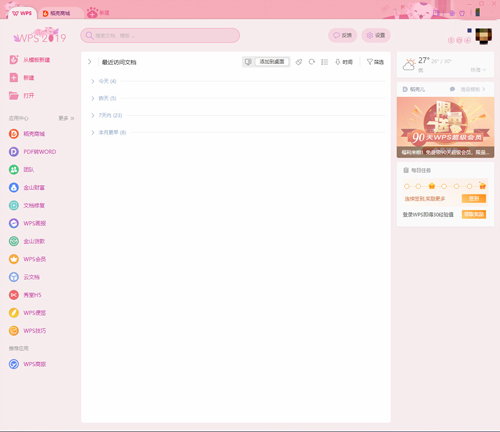 考虑到工作占据着现代人日常生活中的大多数时间,因而工作的环境和办公界面也会在某种程度上影响着我们的心情,WPS Office 2019版本支持换肤功能,想在什么样的场景下办公,完全由你决定。