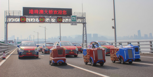 2018 年春晚,无人车出现在春晚舞台,向全国人民展示中国无人驾驶的力量。(首排无人物流车、二排无人环卫车、三排是无人乘用车)