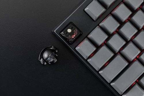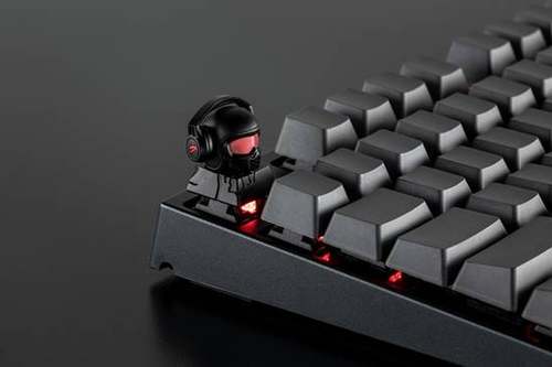 键帽底座采用的是与ZOMO+的畅销产品三级头键帽的同款底座,而头盔主体的灵感则是来自于极限运动头盔。底座部分采用镂空设计,键盘背光能够透过键帽镂空,照亮头盔的眼镜部分并向外投射,换成RBG跑马灯效果的话,就像是未来战士一般,具有十分浓厚的科幻感。