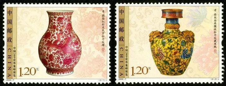 1999年世界邮展发行的品种略少,只有小型张一枚,没有发行特供邮品,小型张采用的是故宫九龙壁,体现了北京特色。2009和2019的两套票的设计理念基本相同,采用了古物和古画为主图,但套票和小型张的表现内容刚好相反,2009年套票表现瓷器,小型张为国色天香图;2019年则换了一下,套票为古画,小型张为青铜器。从市场的角度讲,明显还是古画更占优势,如果去年的小型张采用古画,再加上759万的发行量绝对不是现在的价格。