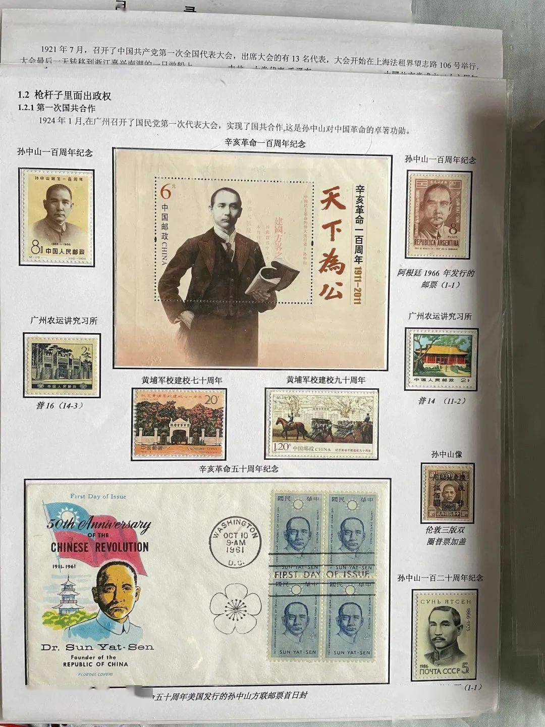 这节党史课上展示的邮票都是由何孙寅提供。何孙寅自上个世纪70年代开始集邮,1982年,何孙寅同其他集邮爱好者一同创立巨化集邮协会,1998年,何孙寅退休后开始全心全意投入集邮事业,他将同一类型的邮票按时间顺序制作成一张张A4大小的系列邮集。如今,他已经集齐新中国成立后国内发行的所有邮票。