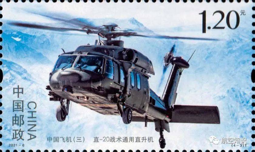 2021年4月17日,为了展现新中国航空工业发展的最新成就,中国邮政发行《中国飞机(三)》特种邮票1套4枚,分别印有歼-20、运-20、直-20、AG600四型飞机的图案。