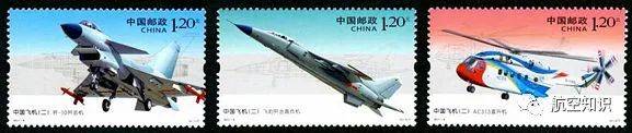 2011年4月17日,新中国航空工业创建60周年之际,中国邮政发行《中国飞机(二)》特种邮票1套3枚,从左到右分别为:我国第一架完全独立拥有自主知识产权的战斗机-歼10;全天候多用途歼击轰炸机-飞豹歼击轰炸机(歼轰-7);自主研制的大型民用直升机-AC313直升机。