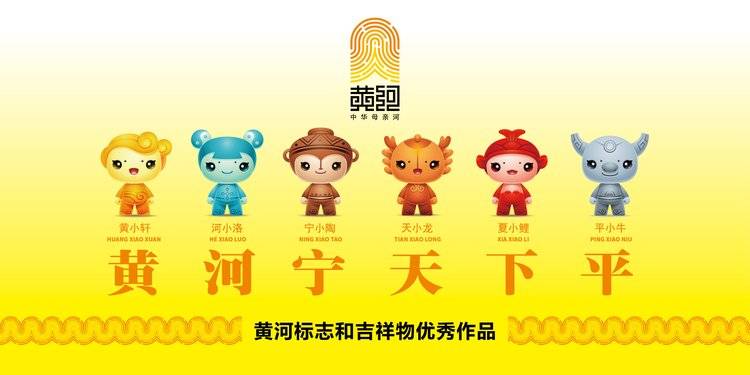 其中,黄河标志金奖作品融入了指纹、仰韶文化彩陶纹、九层涡形指纹组成的“几”字形,以及代表黄河、黄土、黄种人的黄色等元素。黄河吉祥物优秀作品是一组承载深厚文化底蕴、洋溢时代精神的动漫形象,组合名为“河宝”,六个吉祥物分别取名“黄小轩”“河小洛”“宁小陶”“天小龙”“夏小鲤”“平小牛”,融合了黄帝文化、河洛文化、仰韶文化、中华龙文化、鲤鱼吉祥文化以及镇河铁牛和“三牛”精神,囊括了黄河流域最具代表性的文化遗产、自然生态和精神标识。