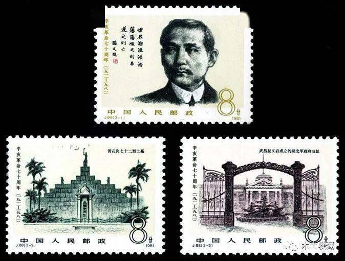 接下来是辛亥革命70周年,同样第一枚表现领导人,第二枚与革命军相关了,第三枚在我看来是该套票中最合适的单枚。