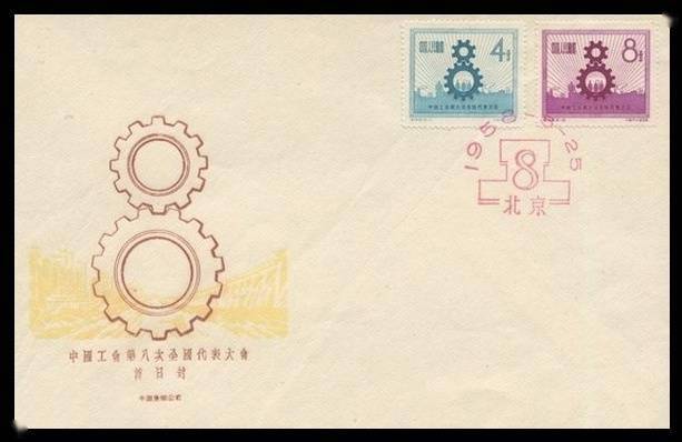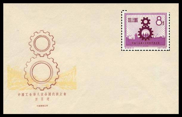 1957年12月2日至12月12日,中国工会第八次全国代表大会在北京举行。大会的主要任务是根据中共“八大”决议的精神,总结4年来我国工会工作的经验教训,讨论和决定全国职工和工会在第二个五年计划期间的具体任务,并且根据几年来的经验和当前的实际情况,修订中国工会章程,选举中华全国总工会第八届执行委员会。1958年5月25日,为了祝贺中国工会第八次全国代表大会成功,中华人民共和国邮电部发行一套《中国工会第八次全国代表大会》纪念邮票。