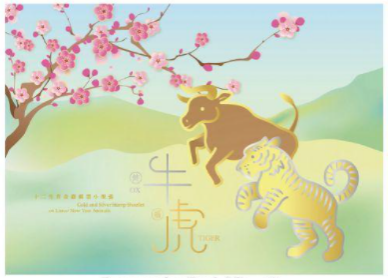 此外,香港邮政还推出了以“健牛福虎”为题的十二生肖金银邮票小型张,邮票以中国画风的山河为背景,缀以点点花开,喜迎新岁。(总台记者 魏可枫 周伟琪)