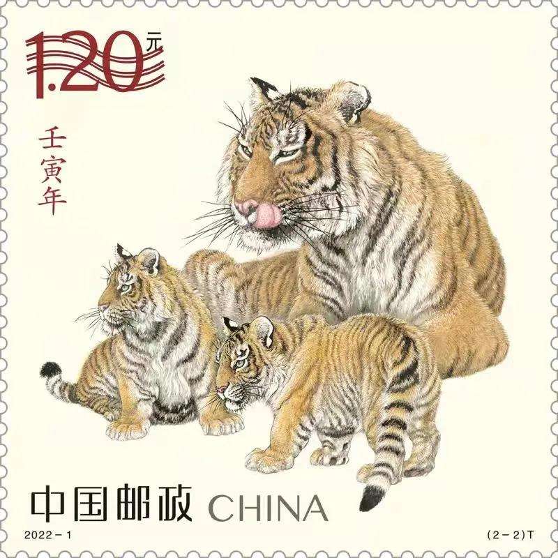 《壬寅年》特种邮票是中国生肖邮票第四轮中的第七套,设计者为我国著名画家冯大中,其艺术作品中尤以画虎闻名。《壬寅年》延续了第四轮生肖邮票的设计理念,诠释“国”与“家”的概念。邮票一套两枚,第一枚邮票“国运昌隆”,描绘了一只气宇轩昂的上山虎形象,矗立远眺、志存高远,传达出国家蒸蒸日上、雄心壮志的含义;第二枚邮票“虎蕴吉祥”,描绘了面容温婉的虎妈妈带着两只小虎的温馨场景,寓意儿孙兴旺、家庭美满。