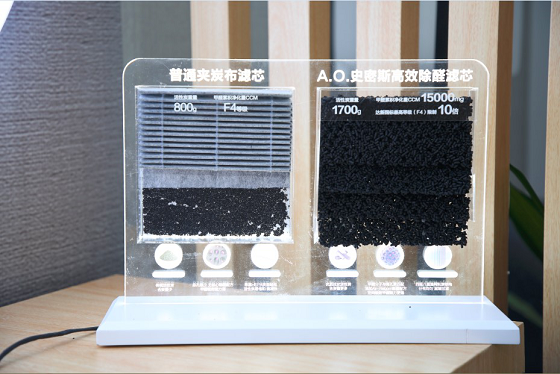 面对污染成分复杂、甲醛源源不断释放的实际新居环境,A。O。史密斯的工程师们,不畏严寒酷暑,4年间不间断的在自己搭建的模拟高温高湿的新居样板房、用户家里等实际环境中不断测试、调试配方实验,终于研发成功Air-Reborn高效除醛配方,定向捕捉吸附甲醛,将甲醛牢牢锁定,不止实验室数据好,在实际家居环境中甲醛浓度可降低至美国标准0。03mg/m³;,远超普通空气净化器,成为市场上不可多见的创新精品。