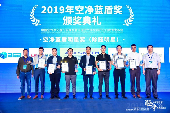 会议的最后环节,2019年空净蓝盾奖颁奖典礼也隆重举行,凭借卓越的除醛能力,A。O。史密斯甲醛净化器获得了【行业影响力品牌】、【除醛明星】、【有效除醛技术】、【行业卓越贡献】等一些列奖项,是名副其实的甲醛净化行业今日之星。
