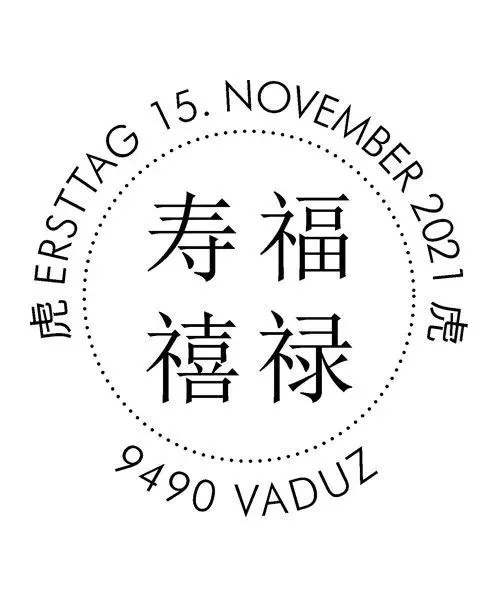 这枚邮票是剪纸风格,在印制过程中采用了最先进的激光切割技术,而且首日戳上还有中文的“福禄喜寿”字样。